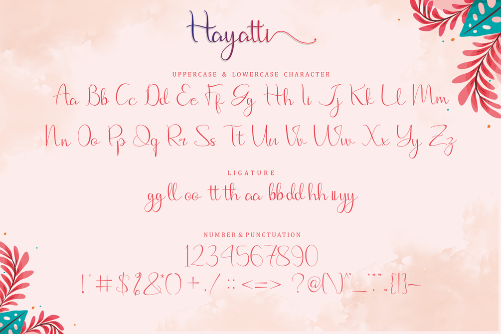 Hayatti is a modern handwritten calligraphy font. This font can make your writing and brand elegant or beautiful. Hayatti is great for unique branding, photo overlays, watermark, greeting cards, posters, business card, invitations, wedding, photography, fashion, apparel, letter, stationery, etc.
